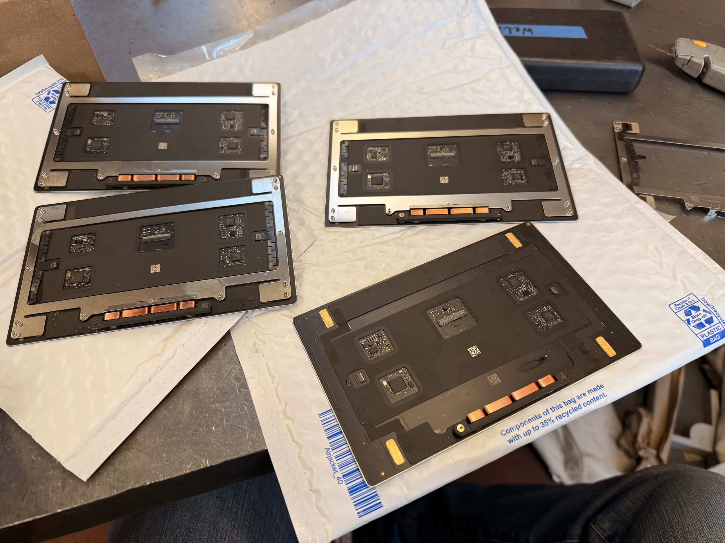 I decided to get some MacBook trackpad parts online as they were already chemically etched to have an incredibly smooth frosted finish.