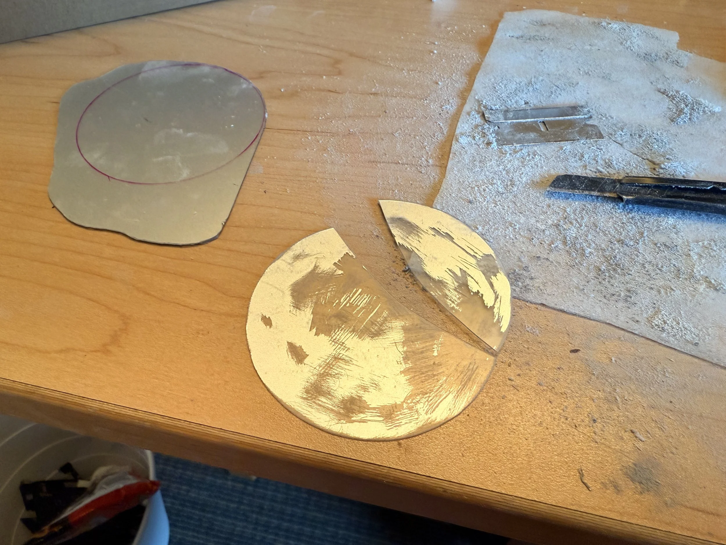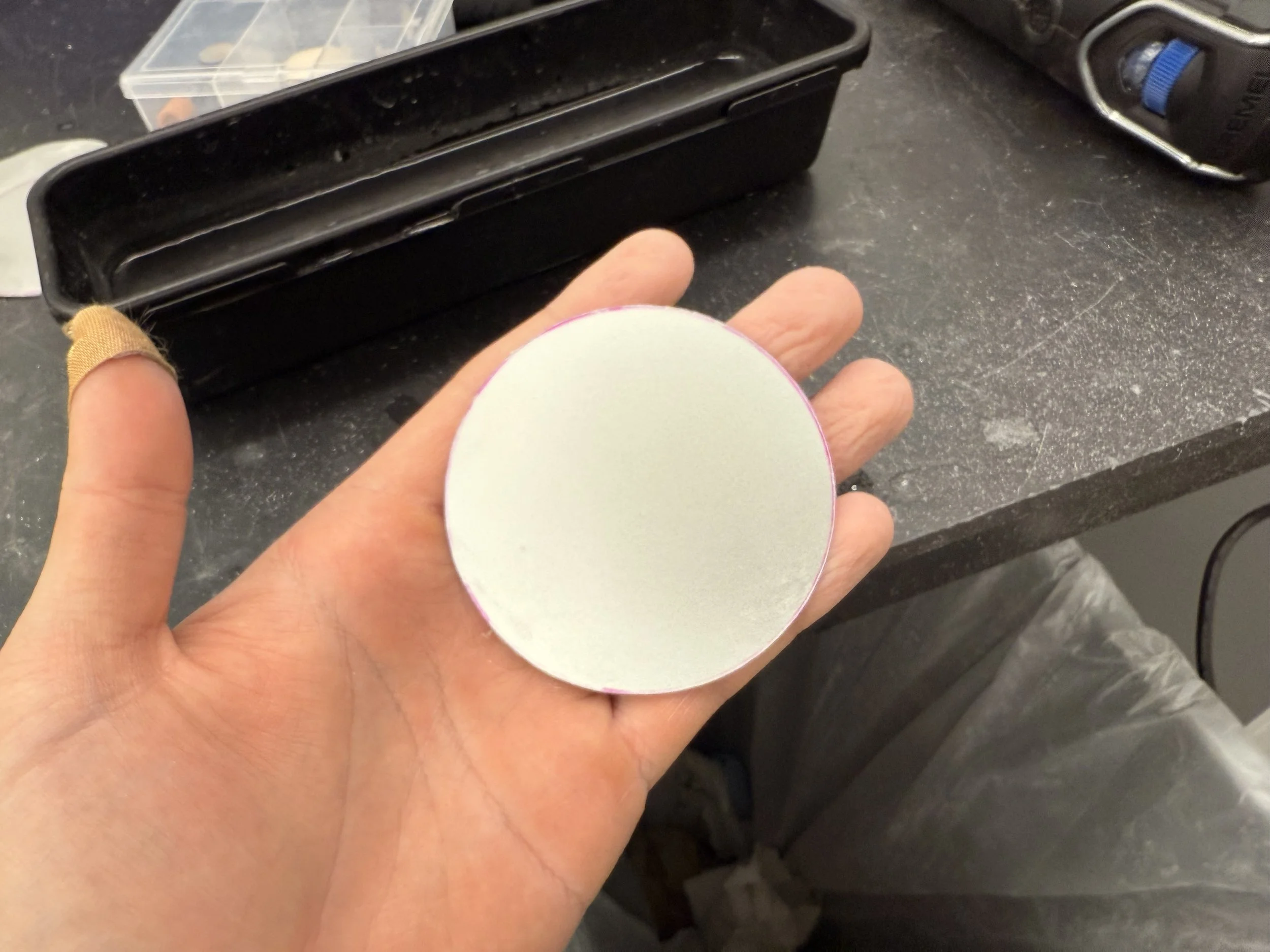I had to start over, but this time, I used the straight glass cutter to remove more of the surrounding material to save a lot of sanding time. Initially, i was afraid cracks would propagate if I got too close to the circle. After 9 hours of sanding, I legitimately developed carpal tunnel that night, but finally achieved my circular piece of glass.