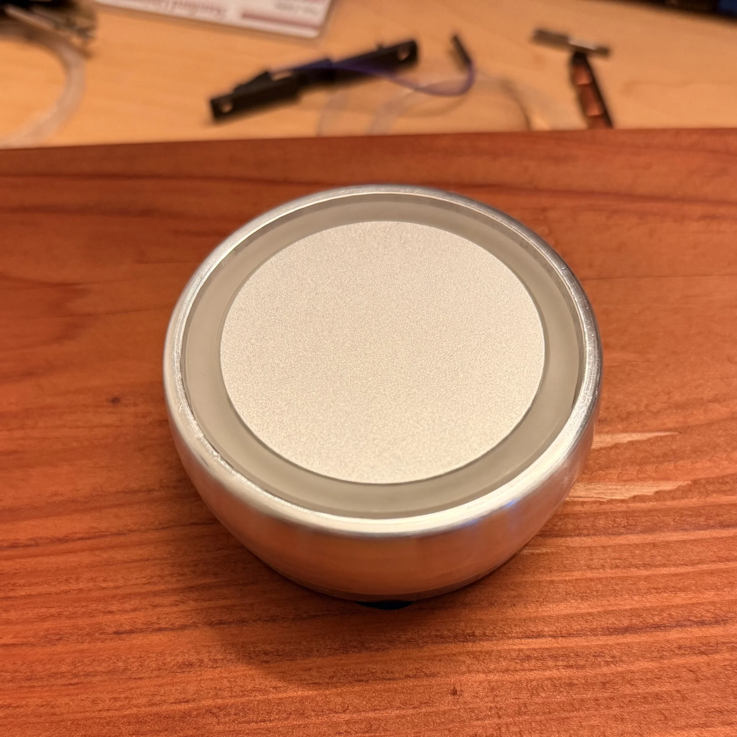 I really wanted a glass cover for my button. I wanted it to be frosted so it would diffuse the ring light as well as feel soft and supple if the user touches it. It would also contrast the light machined finish shine of the aluminum on the edge.